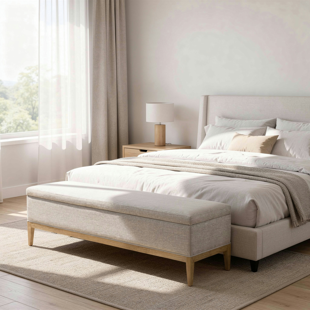 French Contemporary End-of-bed Storage Bench 160cm Grey Linen