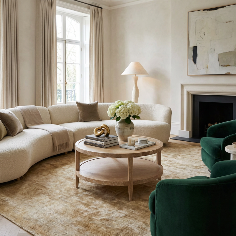 French Contemporary Round Coffee Table Whitewash Oak