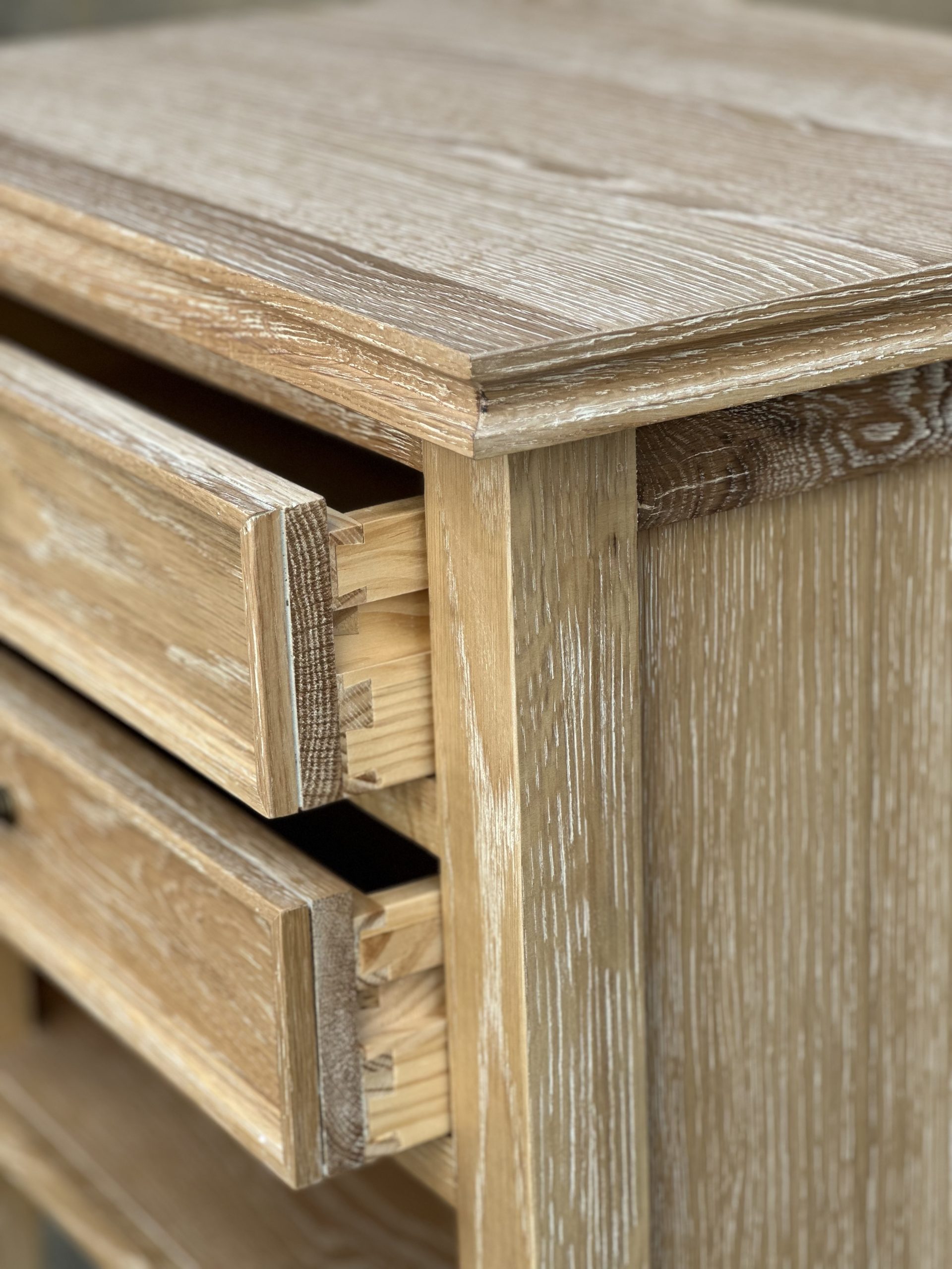 - Two drawers with dovetailed structure