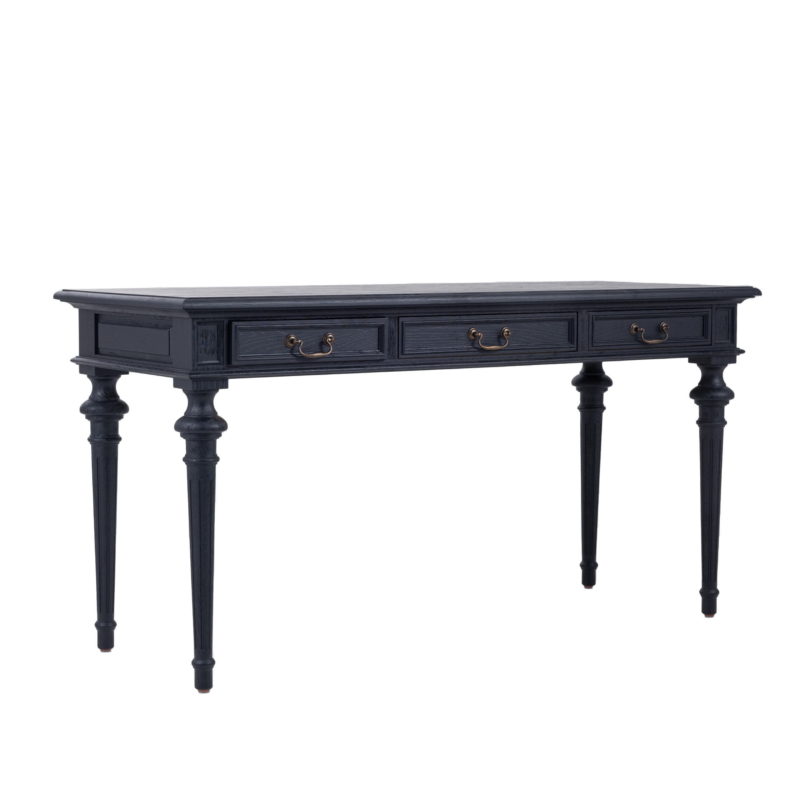 - 3 panel-front drawers fitted with brass pulls