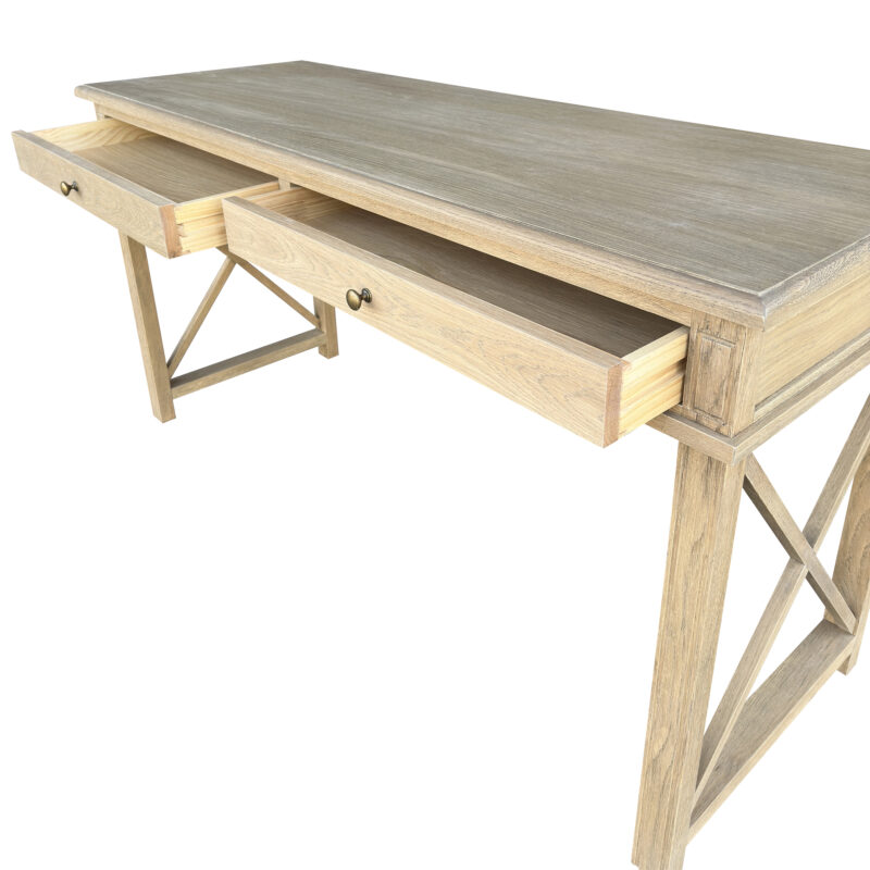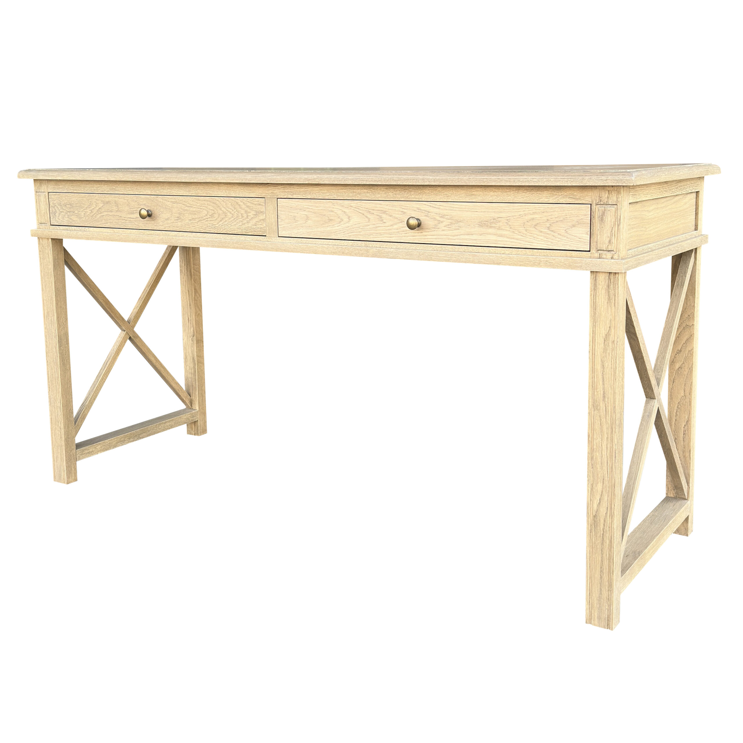 X Brace Desk Whitewashed Oak